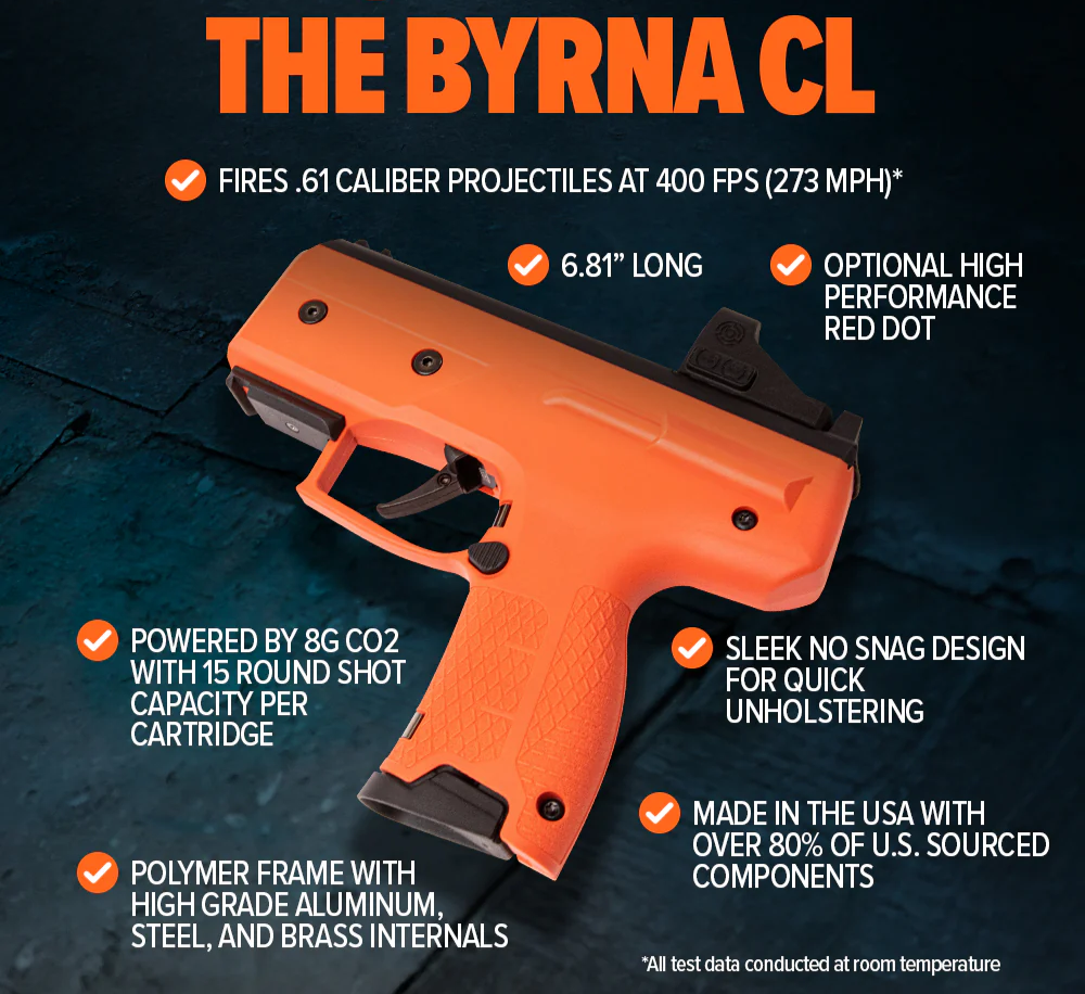 The Templar Byrna CL is our most compact less-lethal pistol. This kit contains no chemical projectiles and is legal in all states in the US. The Templar Byrna CL (Compact Launcher) is the most compact less-lethal launcher in the world. The entire platform has been reimagined for maximum concealability and stopping power. Powered by compressed air (CO2), the Templar Byrna CL shoots .61 caliber round kinetic and/or chemical irritant projectiles that can disable a threat from up to 60-feet away. The TemplarByrna CL is not classified as a firearm, therefore does not require a permit or background check to own. Must be 18 or older to purchase.